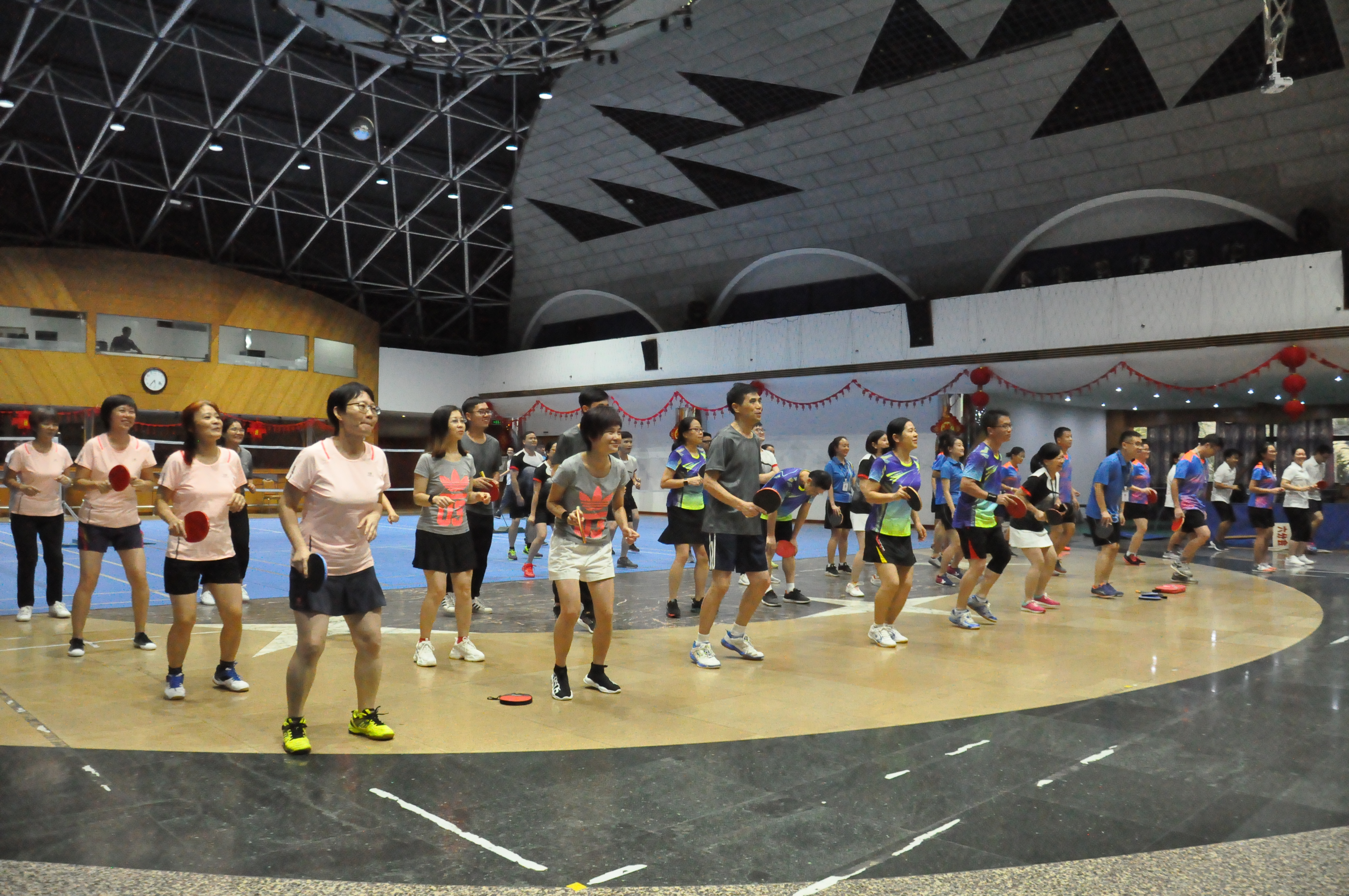 公司紀(jì)委書記、工會(huì)主席才淦在開幕式致辭中肯定了公司工會(huì)開展活動(dòng)的豐富多樣性,以及對(duì)改善職工業(yè)余文化生活,推動(dòng)企業(yè)文化建設(shè)方面的積極作用。同時(shí)還鼓勵(lì)大家積極參與、展示自我,在比賽中發(fā)揚(yáng)“友誼第一、比賽第二、相互交流、共同提高”的精神,團(tuán)結(jié)協(xié)作、勇于拼搏,齊心協(xié)力把本次賽事辦成一次團(tuán)結(jié)、和諧、奮進(jìn)的比賽。隨后,才淦宣布2019年職工乒乓球團(tuán)體賽正式開賽,全體運(yùn)動(dòng)員們以活力動(dòng)感的熱身運(yùn)動(dòng)拉開了比賽的帷幕。